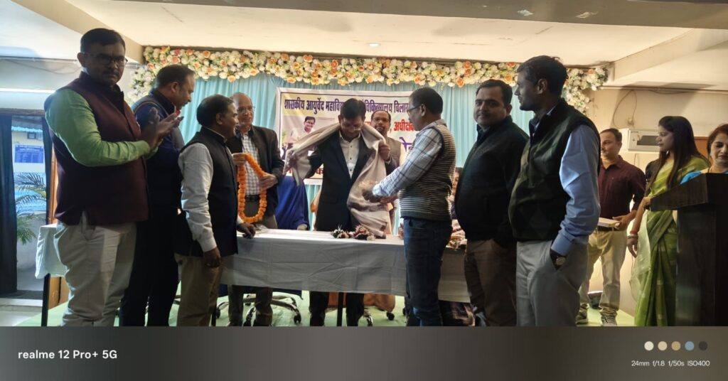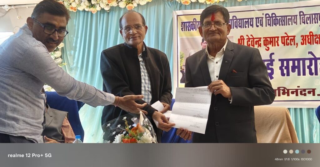 बिलासपुर। शासकीय आयुर्वेद महाविद्यालय में सेवानिवृत्त अधीक्षक देवेंद्र कुमार पटेल के लिए एक भव्य विदाई समारोह कार्यक्रम का आयोजन किया गया। उक्त कार्यक्रम महाविद्यालय के प्राचार्य के नेतृत्व में आयोजित हुआ, जिसमें विभागीय स्टाफ, छत्तीसगढ़ तृतीय वर्ग शासकीय कर्मचारी संघ (पंजीयन क्रमांक 6424) जिला शाखा बिलासपुर, प्रगतिशील पेंशनर्स कल्याण संघ, शालेय सफाई कर्मी संघ, और छत्तीसगढ़ आंगनबाड़ी कार्यकर्ता सहायिका संघ के पदाधिकारी, साथ ही महाविद्यालय के छात्र-छात्राएं बड़ी संख्या में उपस्थित रहे।