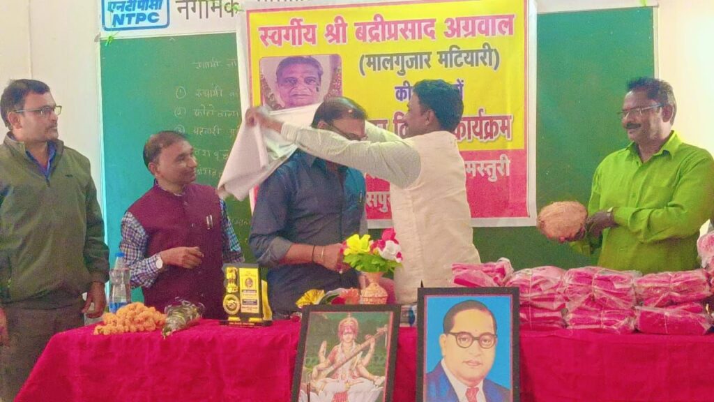 कार्यक्रम के मुख्य अतिथि पूर्व सरपंच ग्राम पंचायत मटियारी, जिला भाजपा उपाध्यक्ष, जनपद सदस्य बिल्हा अवधेश अग्रवाल , विशिष्ठ अतिथि सरपंच ग्राम पंचायत कौवाताल बसंत साहू, अध्यक्षता पूर्व सरपंच ग्राम पंचायत कौवाताल जय सिंह सिदार, सौखीलाल साहू, दिलहरण साहू, राजेन्द्र सुर्यवंशी, अध्यक्षता शाला प्रबंधन समिति अध्यक्ष उपाध्यक्ष ईश्वरी साहू, आकांक्षा केवट के उपस्थिति में कार्यक्रम हुआ। कार्यक्रम का प्रारंभ में सरस्वती माता के छाया चित्रों पर विधिवत पूजन के साथ भारत रत्न डॉ भीमराव अंबेडकर के महापरिनिर्वाण दिवस पर छाया चित्रों पर श्रद्धा सुमन पुष्प अर्पित करते हुए नमन किया गया। अतिथि ने अपने संबोधन में बच्चो को बेहतर शिक्षा ग्रहण के साथ शिक्षा से ही संस्कार की बात करते हुए आशीर्वाद प्रदान किया। विशिष्ट अतिथि सरपंच कौवाताल ने बच्चो को नियमित विद्यालय आने की प्रेरणात्मक बातें कही मुख्य अतिथि अवधेश अग्रवाल को स्मृति चिन्ह शाल श्रीफल देकर आतिथ्य सम्मान किया गया। तत्पश्चात उपस्थित अतिथियों ने 110 बच्चो को स्वेटर अपने करकमलों से वितरित किया गया। बच्चो को स्वेटर मिलने से चेहरे में मुस्कान और खुशी झलक रही थी। कार्यक्रम का संचालन प्रधान पाठक और संकुल शैक्षिक समन्वयक प्रमोद कुमार पाण्डेय ने किया। अतिथियों का आभार प्रदर्शन प्रधान पाठक रामकिशुन सुर्यवंशी ने आभार ब्यक्त किया। इस अवसर पर मोहन लाल बघेल, कमलेश कुर्रे, अशोक टोप्पो, सुनील गौरहा, मुक्तिदानी टोप्पो, रामेश्वरी कैवर्त छात्र छात्राय ग्रामवासी उपस्थित थे।